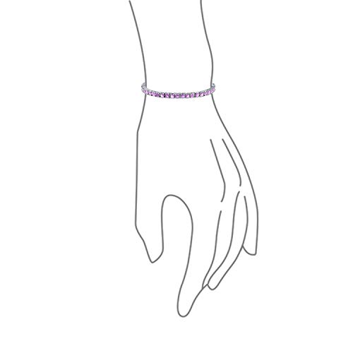 Le lussuose e scintillanti sfumature viola incontrano un design raffinato in questo affascinante braccialetto tennis classico. I CZ rotondi di ametista simulata, ricchi e vividi, aggiungono colore brillante e stile da festa a qualsiasi look. Un'opzione squisita per un compleanno di febbraio o un regalo di nozze per le damigelle.