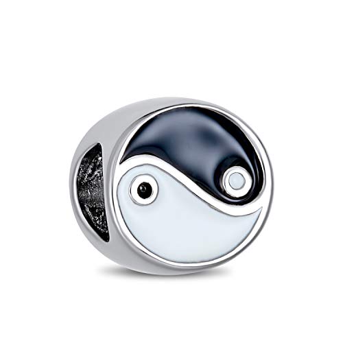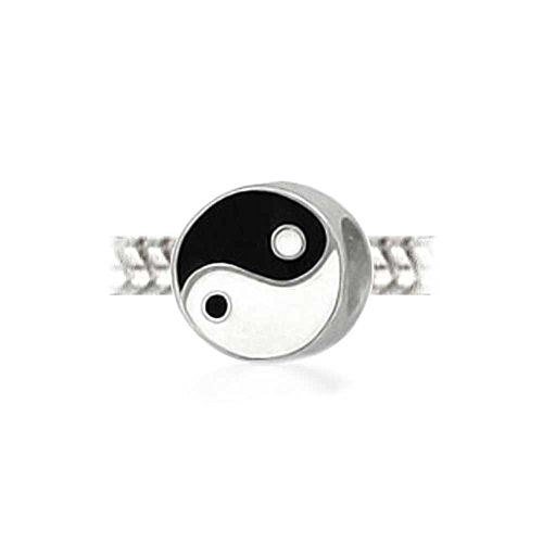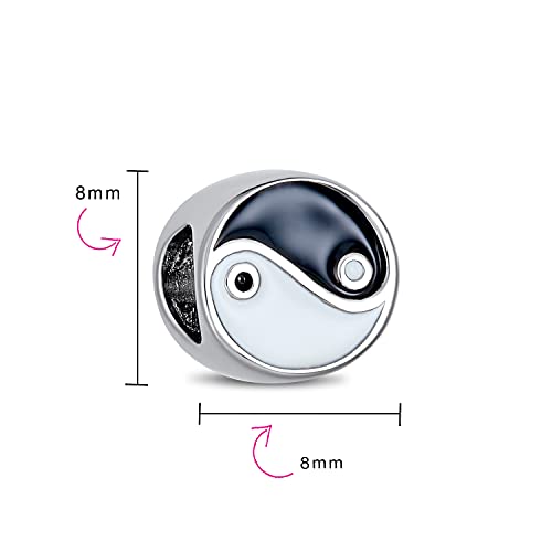 Bling Jewelry Tondo Nero Bianco Equilibrio Yin Yang Inspirational Charm Bead Per Donne Per Adolescenti .925 Argento Adatto A Bracciale Europeo