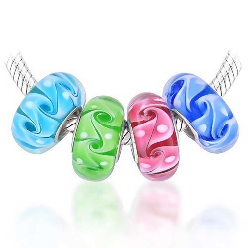 Bling Jewelry Vetro Di Murano Multi Colore Mix Bundle Set Di 4 Distanziatore Perlina Adatta Europeo Oceano Onda Vortice Fascino Per Donne Teen .925 Sterling Silver Adatto Bracciale Europeo