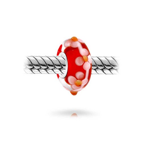 Bling Jewelry Vetro Di Murano .925 Sterling Silver Core 3D Lamp Work Floral Red And White Hibiscus Flower Spacer Charm Bead Adatto A Bracciale Europeo Per Donne Teen