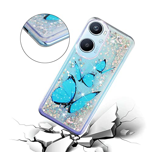 YKTO Bling Liquido Sabbie Mobili Case per Oppo A96 Phone Case Custodia Bumper Custodie Scintillio Della Scintilla Stelle Spessa Proteggere Case Trasparente Silicone Cover per Oppo A96,Farfalla Blu