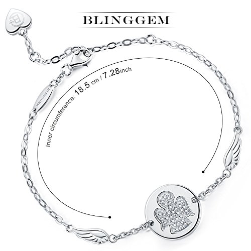 ❤Il bracciale angelo custode BlingGem è realizzato in argento 925 placcato oro bianco, ipoallergenico,senza piombo e senza nichel.Lo squisito angelo custode è decorato con zirconi di alta qualità AAA, che lo hanno reso brillante e davvero accattivante.La catena portacavi regolabile è lunga 21,5cm/8,25pollici.Dare un angelo ad un amico o ad una persona amata in modo che sia sempre vicino a loro-e lasciare che li prenda per mano per proteggerli, e guidarli, e generalmente li aiuta nella loro vita