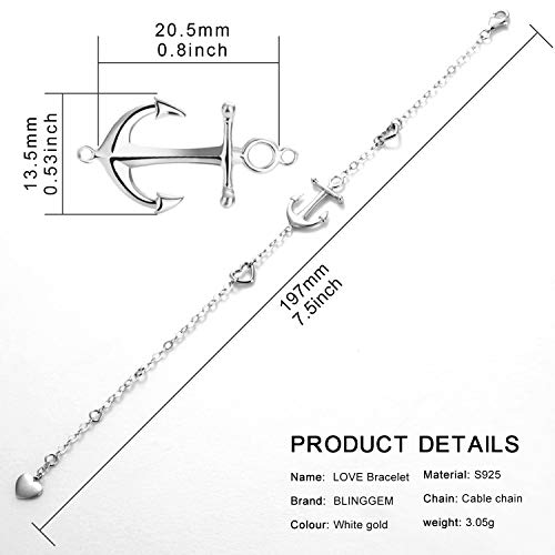 BlingGem Bracciali con Pendenti Le Ancora in Zircone Cubico ed Argento 925 Regalo di Gioielli per la Festa della mamma