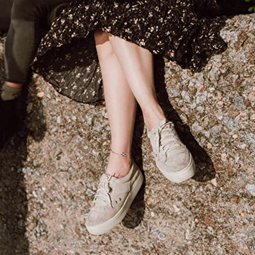 BlingGem Cavigliera per Donna Argento Infinito Cuore Oro Rosa Catenina da Caviglia Estate Zirconia Cubica Rotonda Donna Regalo per Compleanno Anniversario 27.5 cm