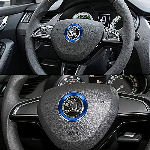 BLINGOOSE Per Skoda Accessori Volante Logo Anelli Coperture Fit per Skoda 14 15 2016 2017 2018 2019 2020 Auto Interni Decor Metallo Alluminio Lega Blu 1 PZ