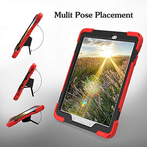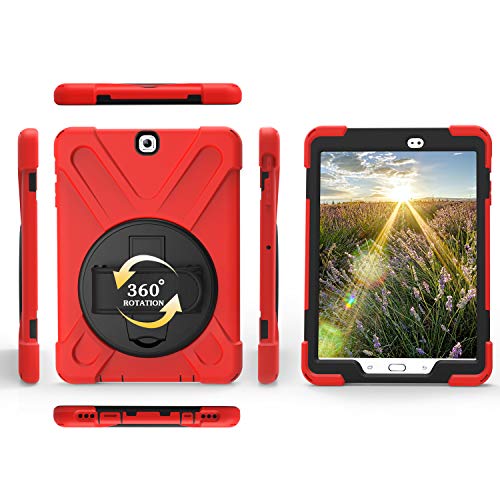 BlinkCat iPad Custodia per Samsung Galaxy Tab S2 9.7, Antiurto Robusto Resistente, Cover Protettiva con Cinturino a Mano+Tracolla / Cavalletto Rotante - Rosso
