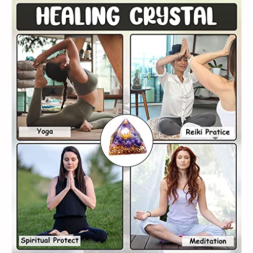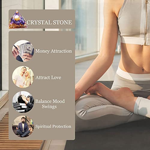 BLISSB Kristallglaspyramide di Ametista Naturale orgonite per campi,Kristall Pyramide per Protezione da campi elettromagnetici e energia negativa, Orgonpyramide di Decorazione per la casa 60mm