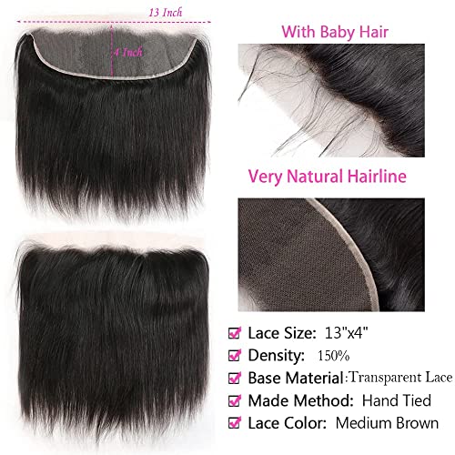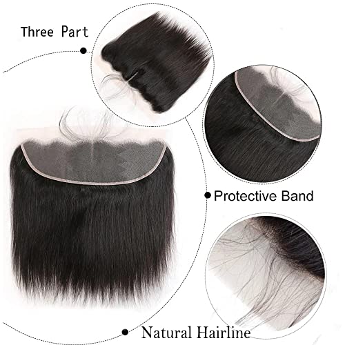 BLISSHAIR Straight 13x4 Lace Frontal Orecchio a orecchio Three Part Closure with Baby Hair 130% Density 10A Brasiliano Virgin Remy Hair Natural Color 8inch