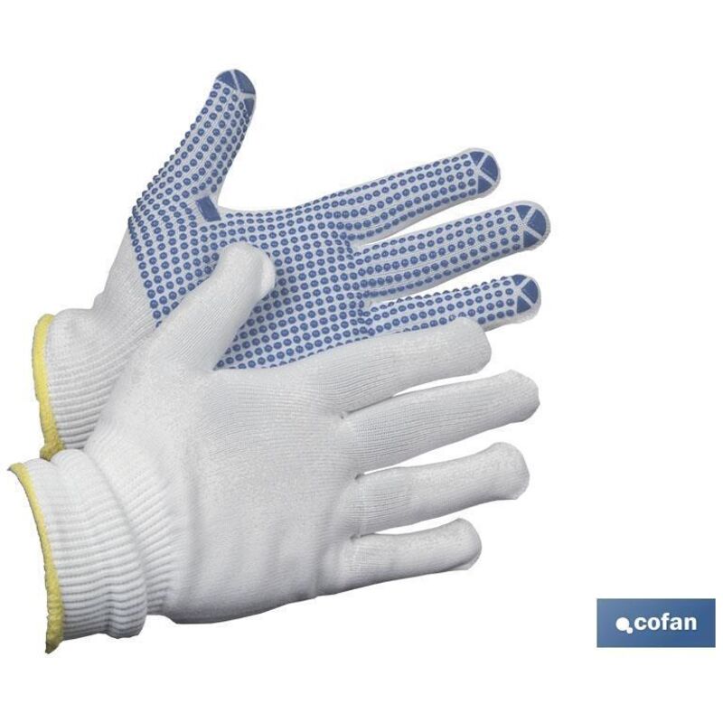 Guanti 100% nylon | Con puntini in PVC sul palmo | presa extra | Forniscono comfort e protezione Guanti in maglia 100% nylon con PVC blu sul palmo e sulle dita. Questi guanti offrono una grande aderenza per le attività agricole, la rac Alta: 1,00 Larghezza: 13,00 EAN: 8445187236712 Peso (kg): 0,06 Profondità: 30,00 Riferimento: 11000079-10BL-U