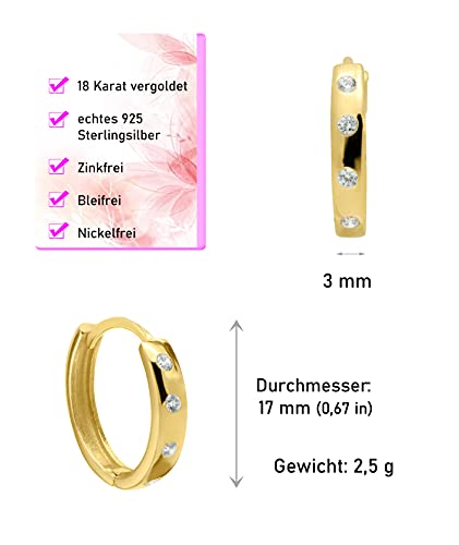 Blitz Fab - Orecchini a cerchio da donna in argento Sterling 925 placcato oro 18 K con zirconi diametro 17 mm, con confezione regalo