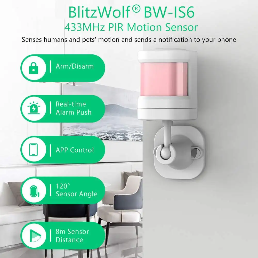 BlitzWolf BW-IS6 433MHz Smart Human Body Sensors Wireless Arm Disarm Real-time Alarm Push APP Control PIR Motion Detection