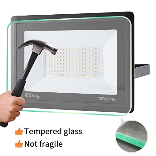 Blivrig 100W Faretto LED da esterno Bianco Freddo 6500K, 10000LM Faro LED Parete, Impermeabile IP66 Fari LED Luce Bianca Fredda Proiettore per Cortile Cantiere Giardino