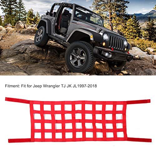 BLLBOO Copertura Rete per Tetto Auto - Copertura per Rete di stoccaggio Tetto Auto Compatibile con Wrangler TJ JK JL1997-2018(Rosso)