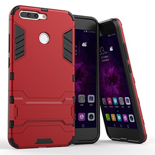 Bllosem Huawei Honor 8 PRO Cover,Honor V9 Cover, Hybrid Dual Layer PC+TPU Completa Body Shock Armour Resistente con cavalletto Funzione Custodia per Huawei Honor 8 PRO Rosso