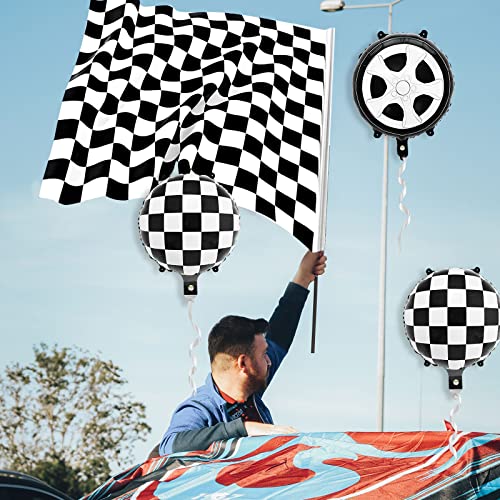 BLMHTWO 12 palloncini per auto da corsa, 45,7 cm, a scacchi in bianco e nero, pellicola in alluminio, resistenti, riutilizzabili, decorazioni per feste di compleanno, feste a tema auto club