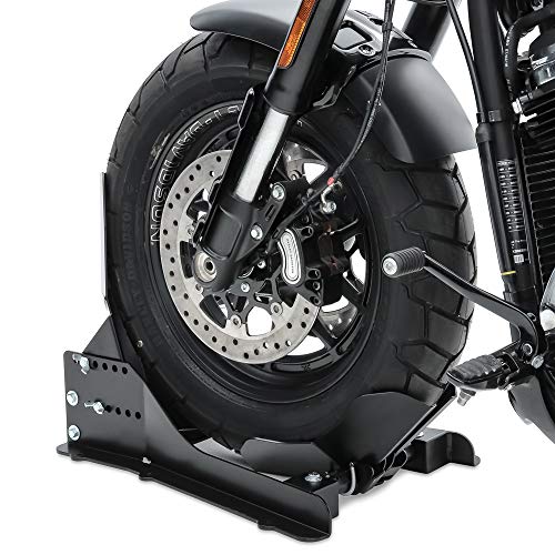 Regolabile per dimensioni delle ruote da 15-21 pollici e 110-200 mm di larghezza, in modo da poter essere utilizzato con molte ruote posteriori. Supporto estremamente stabile anche su motociclette pesanti e pneumatici anteriori larghi