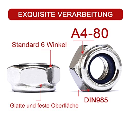 Set di 50 dadi di bloccaggio DIN 985 M6 M8, dadi esagonali in acciaio inox A4-80, dadi di bloccaggio autobloccanti, dadi esagonali con scatola