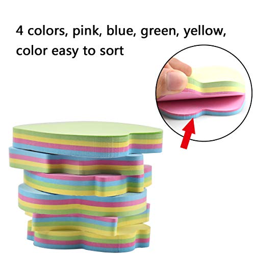 Blocchetti Adesivi, 6 Pezzi Foglietti Adesivi a Forma di Cuore Stella Mela Fragola Orso Pino, Sticky Notes Memo Adesive Colorate Note Appiccicose Multiuso per Ufficio Casa Scuola, 70 x 70mm, 600 Fogli