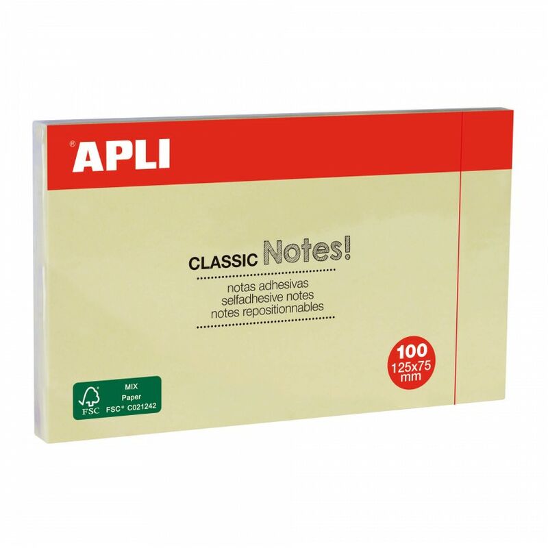 Blocco da 100 fogli di foglietti adesivi 125 x 75 mm in colore giallo standard. I foglietti adesivi Classic sono realizzati con carta certificata FSC e adesivo a base d'acqua. Sono ideali per lasciare i vostri messaggi su tutte le superfici. L'adesivo riposizionabile permette di attaccarli e staccarli più volte. Dimensioni più grandi per i messaggi più lunghi. Caratteristiche: -Dimensioni del prodotto: 125 x 75 mm -Colore: giallo -Adesivo: riposizionabile -Certificati: FSC -Formato di vendita: Confezionato in busta termoretraibile