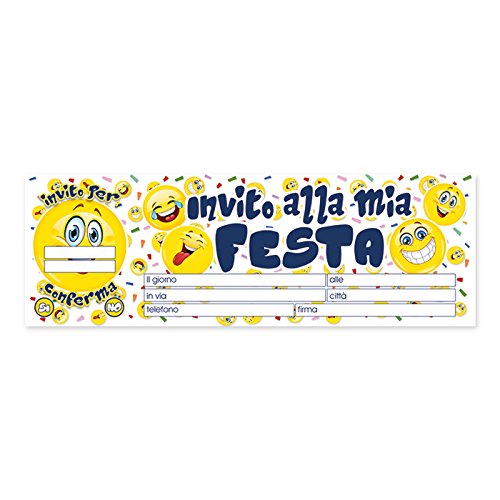 Blocchetto 20 inviti FESTA di COMPLEANNO SMILE - ideale per feste, compleanni o qualsiasi occasione