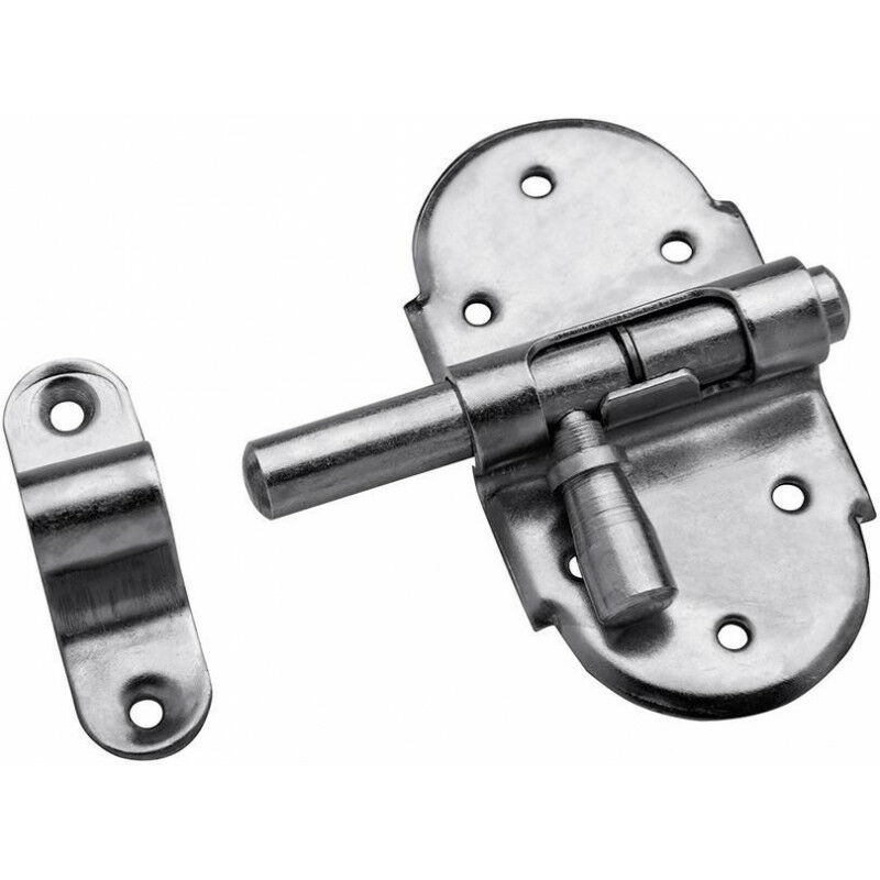 Bullone per porta 1706 - In acciaio. zincato. argento - Versione con occhiello e molla - Lunghezza occhiello 13 mm - Con 8 fori per viti. Foro della vite Ø 2,5 mm - Versione del foro della vite a testa svasata - Estensione 16 mm - Spessore piastra 2 mm.