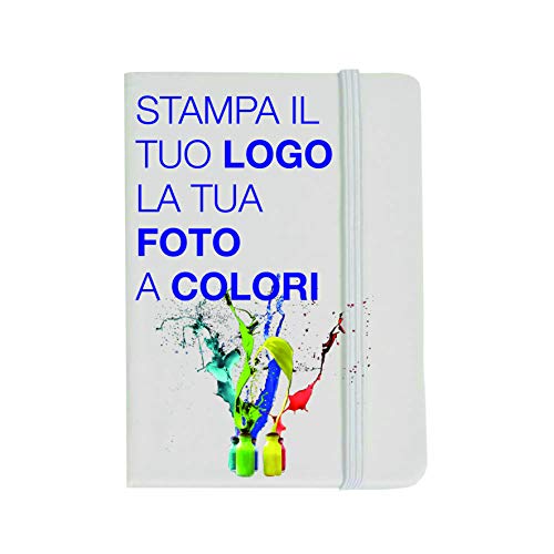Blocco Note 9x14cm Personalizzato con Foto, Testi, Loghi - Classic Notebook, Taccuino con pagina bianca ed elastico