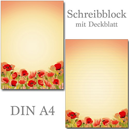 Blocco per appunti, 7420, motivo decorato con papaveri, 25 fogli, formato DIN A4, con copertina 1 Briefblock + 15 Kuverts