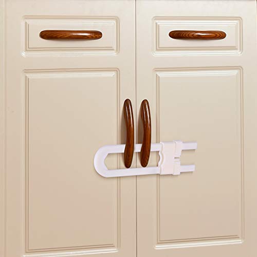 Blocco per armadietto scorrevole da 4 pezzi Blocco per armadi scorrevole di sicurezza per bambini Blocco di sicurezza per bambini a forma di U, nessuna perforazione o viti extra fisse