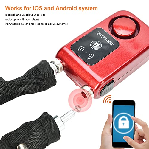 Blocco catena moto, Impermeabile catena di blocco della bicicletta Bluetooth intelligente con forte lucchetto, 110dB di allarme, controllo App per IOS/Android