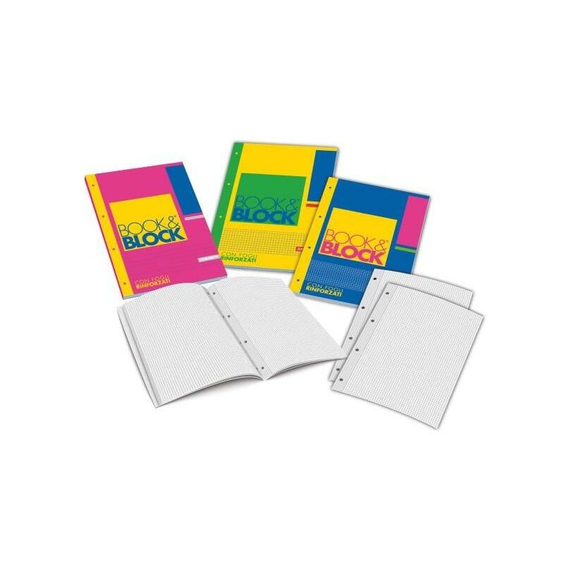 BOOK&BLOCK BLOCCO COLLATO E FORATO A4 CON FOGLI RINFORZATI I pratici blocchi collati con tanti fogli forati e rinforzati utilizzabili anche come ricambi per copertine e raccoglitori ad anelli. Blocco collato e forato di dimensioni A4 con carta da 80 gr e 40 pagine. Larghezza 210 mm Altezza 270 mm Quantità per pacco 5 pezzo(i) Quantità di fogli 40 fogli Colore del prodotto Multicolore Formato A4 Peso medio 80 g/m² Carta rigata Si Tipo di carta prevalente Carta quadrettata