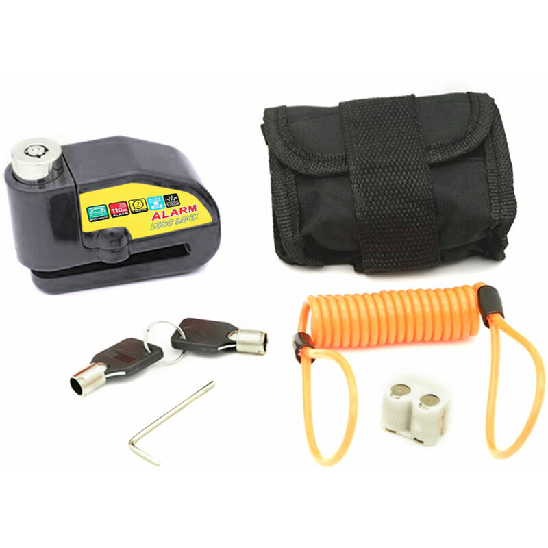 Caratteristiche: Super antifurto con allarme: dimensioni ridotte e volume elevato Doppio cilindro rinforzato stile disco ad alta sicurezza, si adatta a fori d'aria più piccoli. Robusti e durevoli: con funzione impermeabile, continua a lavorare nei giorni di pioggia e non arrugginisce. I bloccadischi per impieghi gravosi sono temprati per resistere agli attacchi di tagli, seghe e scalpelli, nucleo di blocco antitrapano ad alta sicurezza. Antifurto con allarme da 110 dB: l'allarme da 110 dB si attiverà automaticamente al rilevamento di vibrazioni o urti ed è abbastanza forte da scoraggiare un potenziale ladro. Ampia gamma di applicazioni: tute blocca disco per moto per la maggior parte delle moto, scooter, cruiser, chopper, bici sportive, bici da corsa. Cavo promemoria: con un cavo promemoria per ricordarti di rimuovere il lucchetto ed evitare potenziali danni causati dalla guida quando il blocco del disco è attivato. Servizi: se hai altre domande, ti preghiamo di connetterti con noi in