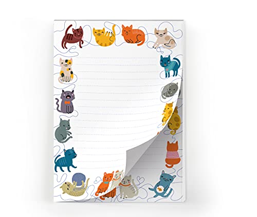 Blocco da lettere con busta per bambini, gatti, set di carta da lettere per ragazze (blocco A5 con 25 fogli + 15 buste)
