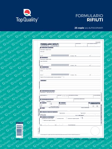 Blocco moduli trasporto rifiuti formulario di identificazione. 25 Moduli in 4 copie. Formato 297x225