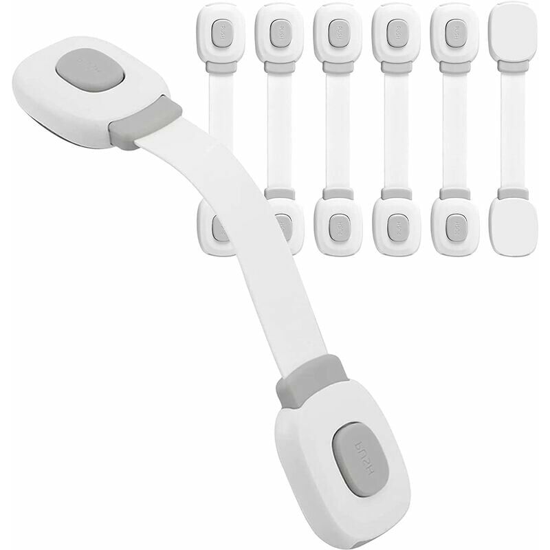 Protezione sicuraLa serratura di sicurezza per bambini protegge i bambini dalle dita pizzicate e impedisce l'accesso a oggetti pericolosi che non sono destinati alle mani dei bambini Sistema di doppia chiusura aggiornatoI modelli Lock degli armadietti per bambini hanno un sistema di doppia chiusura, questi sicurezza Le serrature possono essere aperte sia da sinistra che da destra, basta premere il pulsante ed estrarlo delicatamente. È facile da usare e da usare per gli adulti, ma non facile da aprire per i bambini. Il nastro biadesivo acrilico potenziato a viscosità elevata fornisce un'adesione affidabile e ha un'adesione più forte rispetto a quelli tradizionali. Non è facile cadere. Questa cassettiera di sicurezza per bambini è facile da pulire senza danneggiare i tuoi mobili. Installazione facile e veloce, senza bisogno di attrezzi e viti. Basta strappare la pellicola protettiva e incollarla sui mobili Design eleganteDesign elegante con cinturini in colore coordinato. Le porte di