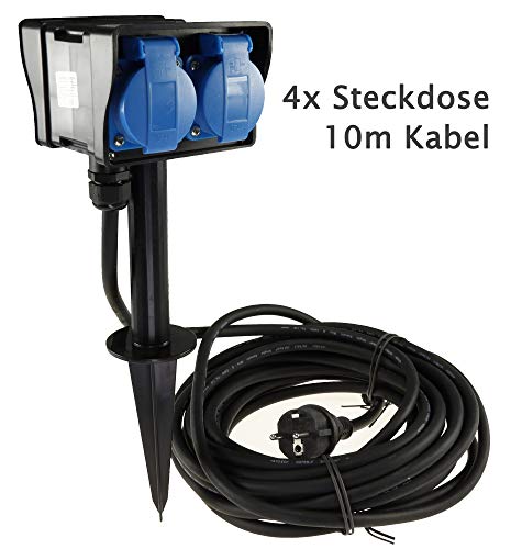 Blocco di prese da giardino, resistente alle intemperie, lattine con coperchio, 230 V/16 A, 4 prese, 10 m, cavo in gomma