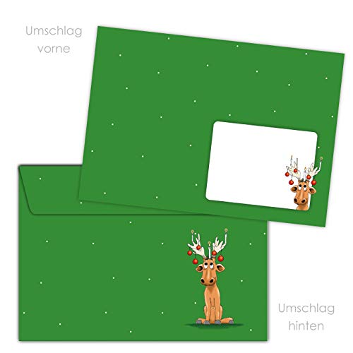 Blocco note "Elch RUEDIGER" DIN A5 (a righe, 50 fogli), con 20 buste abbinate/carta da lettere natalizia/carta da lettere di Natale