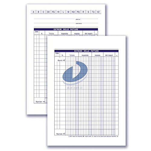 Blocco Schede Protocollo Fatture con Imponibile Iva e Altri importi, formato tascabile - 100 Schede