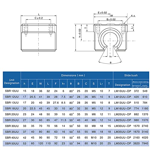Blocco scorrevole con cuscinetto lineare, 4 PEZZI SBR12 UU Movimento del blocco scorrevole con cuscinetto lineare aperto