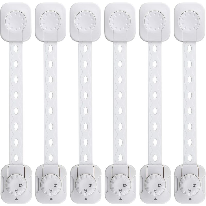 Prova del bambino e degli amici pelosi: Le serrature a prova di bambino impediscono al tuo piccolo esploratore o agli adorabili animali domestici di entrare in un luogo pericoloso o di rovinare la casa. Si adatta ad armadi, armadietti, cassetti, sedili del water, finestre, forni, ecc. Sistema di doppia chiusura migliorato: I modelli di serratura per armadietto per bambini hanno un doppio sistema di chiusura che impedisce a bambini o animali domestici di aprire ante o cassetti e li tiene al sicuro. Le serrature di sicurezza per armadietti per bambini offrono ai tuoi bambini un'infanzia sicura. Materiale durevole e non tossico: I nostri fermi di sicurezza per bambini sono realizzati in ABS e TPE atossici, che offrono maggiore flessibilità e durata, offrendo al tuo bambino una casa sicura senza sostanze chimiche. Cinghia regolabile per vestibilità personalizzata: Progettati con fori per cintura e un'intelligente manopola di blocco regolabile, i blocchi di sicurezza delle porte consentono