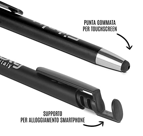 [ PENNA TOUCH CON SUPPORTO SMATPHONE ] Il nostro blocco note sarà accompagnato da una penna a sfera realizzata in Italia con plastica riciclatacon un gommino touch screen utilissimo da utilizzare con il tuo smartphone o tablet, inoltre e dotata di un supporto per smartphone utile per mantenere dritto il tuo dispositivo qualora ne avessi bisogno per leggere documenti o vedere video durante le tue ore lavorative o di studio .