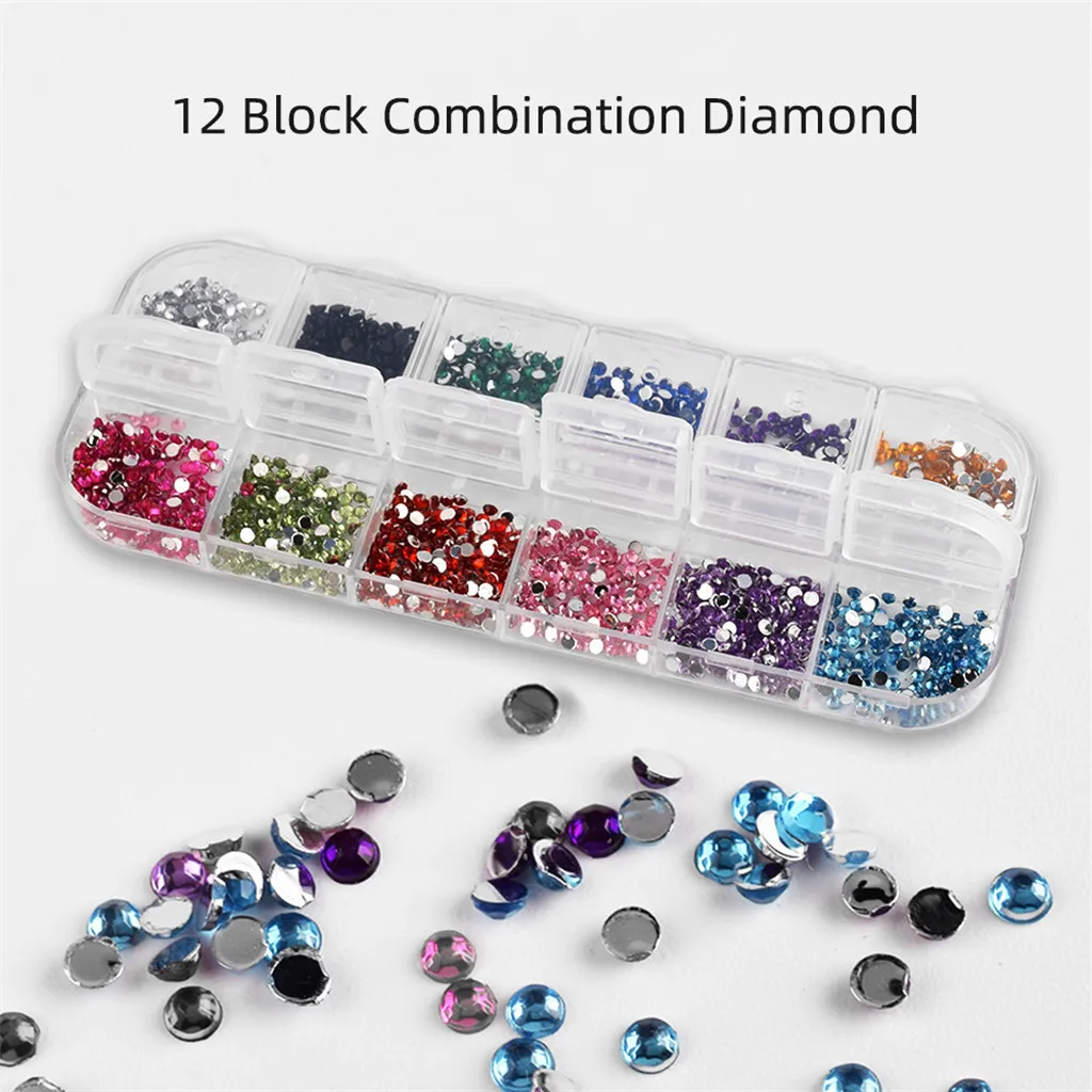 12 Blocks Combination Diamonds Box Nail Art Rhinestones DIY Decoration
