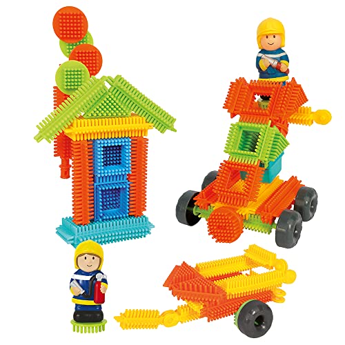 BLOKO - Tubo da 100 BLOKO con 2 figure 3D dei pompieri - Da 12 mesi - Made in Europe - Giocattoli da costruzione - 503667