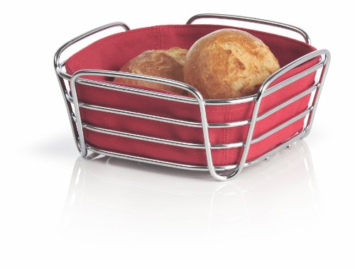 Blomus Delara, Cestino per Pane Grosso, Borsa di Stoffa su Acciaio Cromato, Colore Rosso, 63549