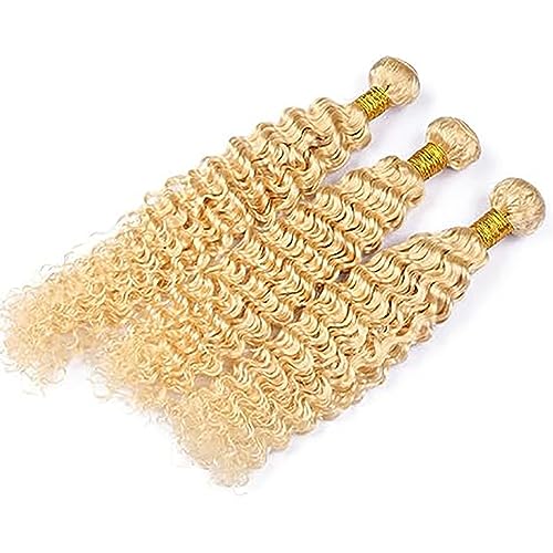 Blonde Bundles Human Hair Extensions Deep Wave Hair Bundles 100% Hair Human Hair Bundles Real Hair Double Weft Bundles Human Hair Bundles for Sew No Smell 3 Bundles Blonde Hair 26 28 30 Inch