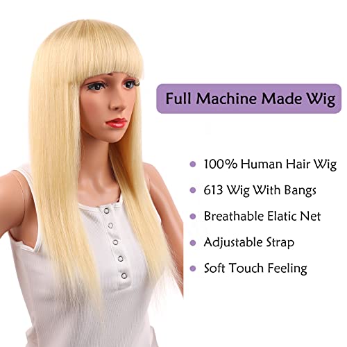 613 Blonde Wig Straight Human Hair Wigs with Bangs None Lace Front Wigs Glueless Brazilian Virgin Remy Straight Hair Full Machine Made 613 Honey Blonde Wigs for Black Women 16inch by Hiyorlik
