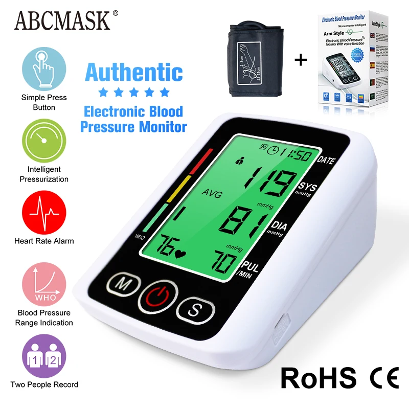 Home Blood Pressure Monitor Automatic Digital LCD Large Cuff Upper Arm Blood Pressure Monitors Medical BP Heart Rate Pulse Meter