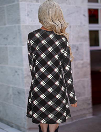 DESIGN: Questo splendido abito scozzese è sicuro di fare una dichiarazione per tutta la stagione! Presenta un audace nero, antracite e plaid bianco per una combinazione elegante e chic! Il materiale a maglia ha una leggera consistenza ed è perfetto anche per i giorni freddi dell'autunno! Questo vestito ha anche uno scoopneck, maniche lunghe e uno sguardo svasato sulla gonna! Roccia questo look con stivali alti e una sciarpa accogliente per un look mozzafiato!