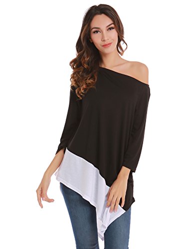 Blooming Jelly patchwork da donna una spalla sciolto lungo top Fashion autunno oversize camicetta Black XXL