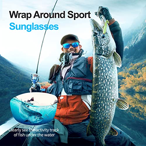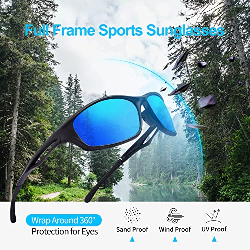 Bloomoak Occhiali da sole da ciclismo, polarizzati, sportivi, protezione UV, montatura infrangibile TR90, adatti per guida/corsa/occhiali da sole (blu)