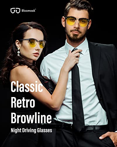 Bloomoak Occhiali da guida notturna, polarizzati, design classico | semi-telaio | rivetti metallici | protezione UV400 per la pesca | Riduzione del rischio | Bagliore